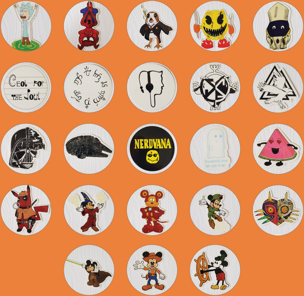 StickersConor Carroll Art Glossy Coated Vinyl Sticker €22eurTiny Rick€22eurSpider-Ham€22eurPorgwarts€22eurNightmare Pacman€22eurHoly Guacamole€22eurCeol For The Soul€22eurElvish - Not All Those Who Wander Are Lost€22eurMusic Man€22eurWolves - Skoll and Hati€22eurOdin's Raven€22eurDarth Vadestar€22eurStylized Millenium Falcon€22eurNerdvana€22eurLittle Ghost - You Haven't Seen The Last Of Me€22eurHappy Little Watermelon€22eurDetective Pikapool€22eurMajoras Clock Mask€22eurSorcerer Mickey€22eurIron Mickey€22eurPan Mickey€22eurJedi Mickey€22eurSherriff Mickey€22eurSteamboat Mickey232eurQuantityAdd to cartOne vinyl sticker of your choiceAdd to wishlist New wishlistShareShare on XShare on Facebook Copy linkCopy product URL